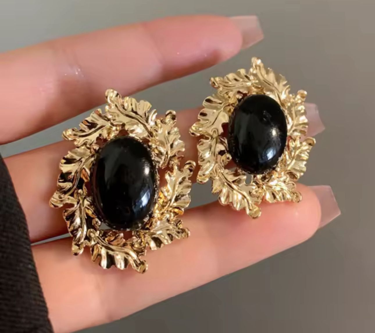 Aretes dorados con piedra negra