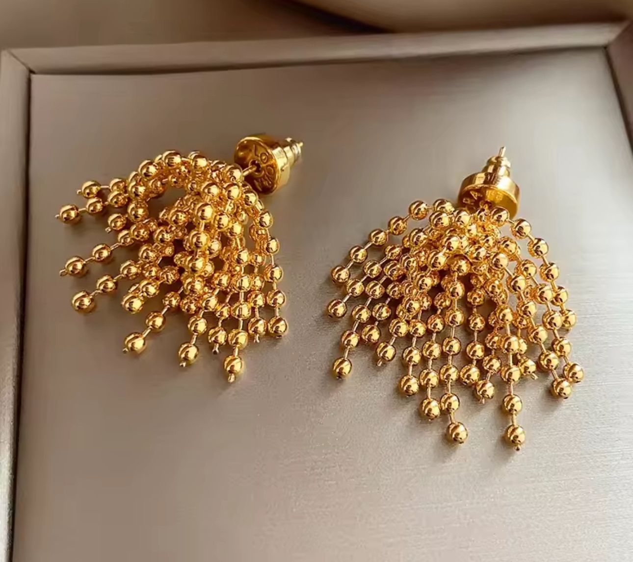 Aretes dorados con bolitas colgantes
