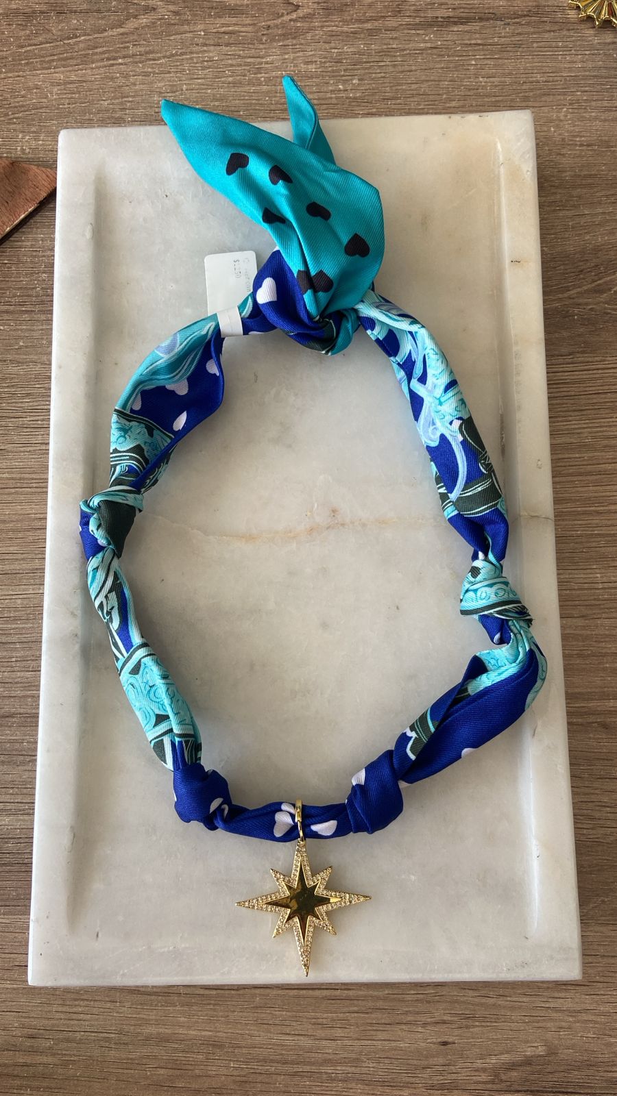 Choker en tonos azules con dije dorado de estrella